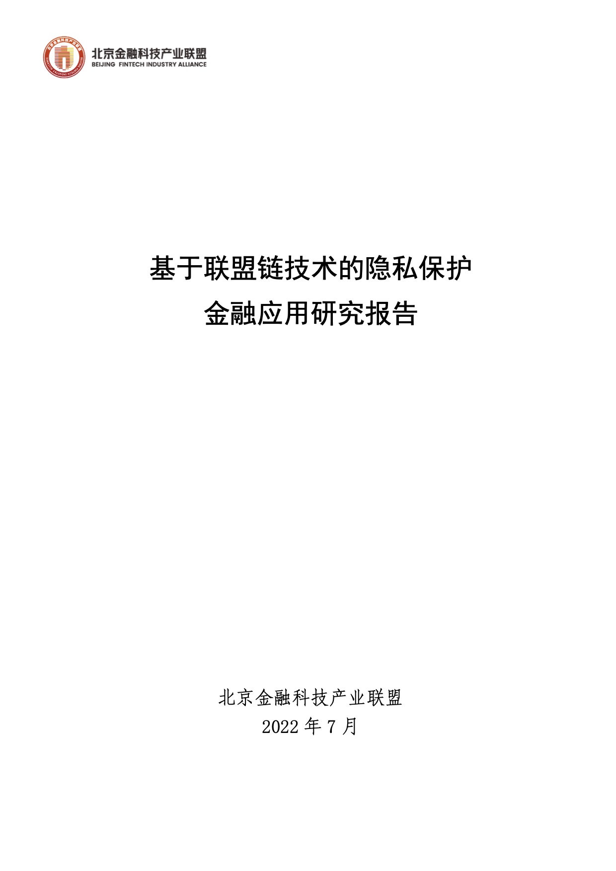 北京金融科技產業聯盟《基于聯盟鏈技術的隱私保護金融應用研究報告》