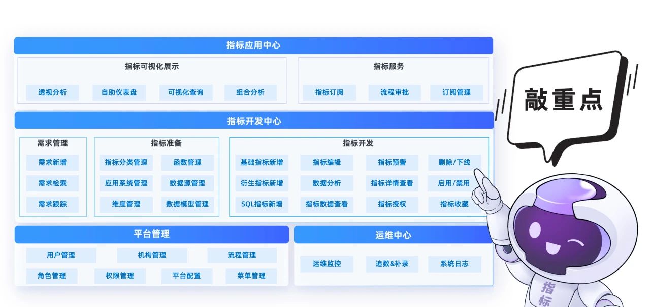 金融機(jī)構(gòu)高度重視!很City! “指標(biāo)”作為業(yè)務(wù)和數(shù)據(jù)的交匯點(diǎn),已成為金融機(jī)構(gòu)量化實(shí)際業(yè)務(wù)效果的核心依據(jù),并廣泛應(yīng)用于其各項(xiàng)運(yùn)營(yíng)管理工作中。與此同時(shí),監(jiān)管側(cè)也提出了一套數(shù)據(jù)報(bào)送的指標(biāo)體系規(guī)范,在自身精細(xì)化管理與監(jiān)管標(biāo)準(zhǔn)化要求的雙重驅(qū)動(dòng)下,不同類型的金融機(jī)構(gòu)紛紛啟動(dòng)指標(biāo)體系的建設(shè)工作。 但知易行難,許多金融機(jī)構(gòu)自建設(shè)初期就沒有形成完整的指標(biāo)管理抓手,隨之而來(lái)的指標(biāo)管理混亂問題也日益顯著,甚至嚴(yán)重影響了企業(yè)數(shù)字化深化的進(jìn)度和質(zhì)量。