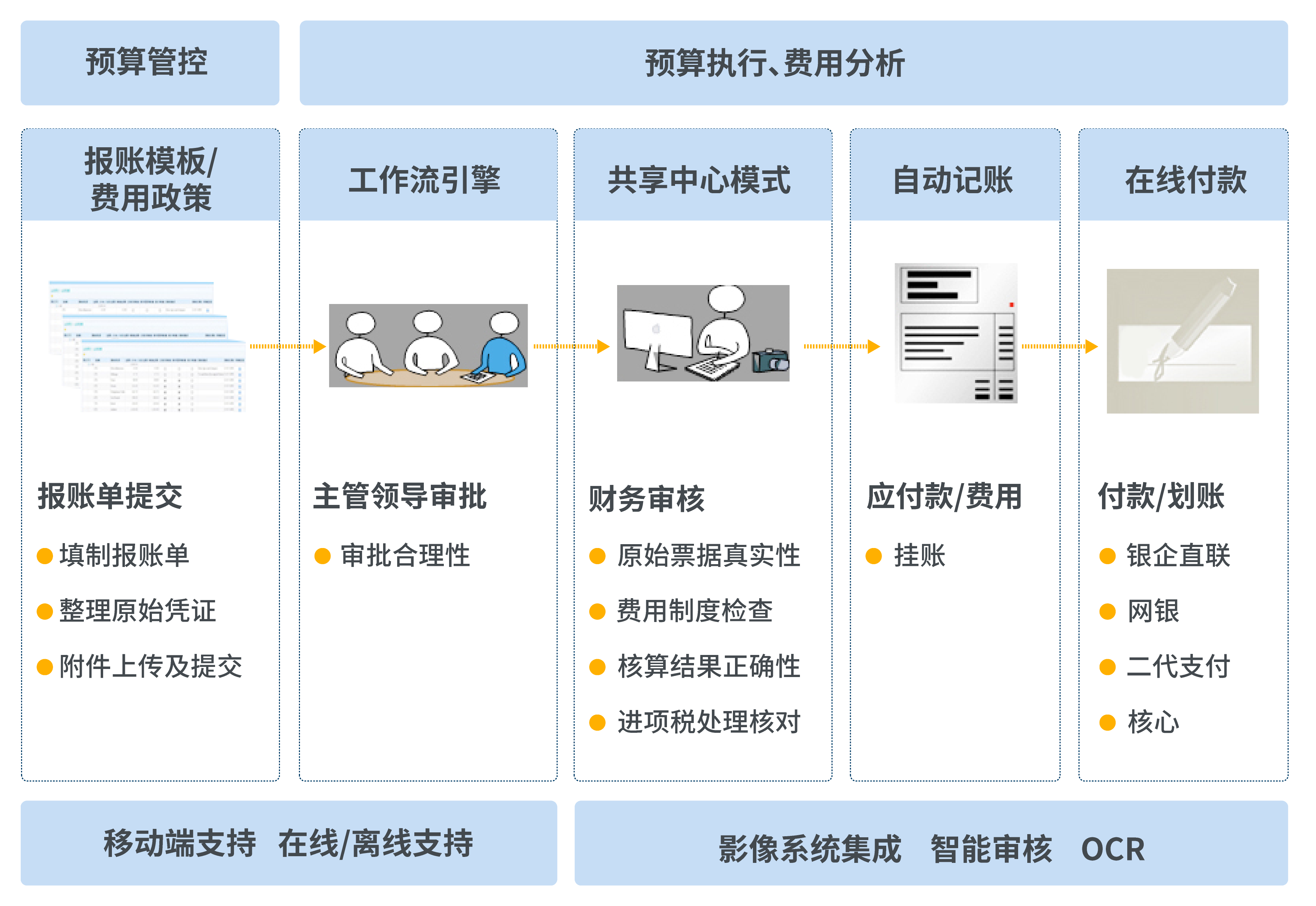 ?·管理人員:在報銷環節進行合理的費用分攤,及時發現費用與預算的執行偏差,有效發現并控制不必要的費用支出;