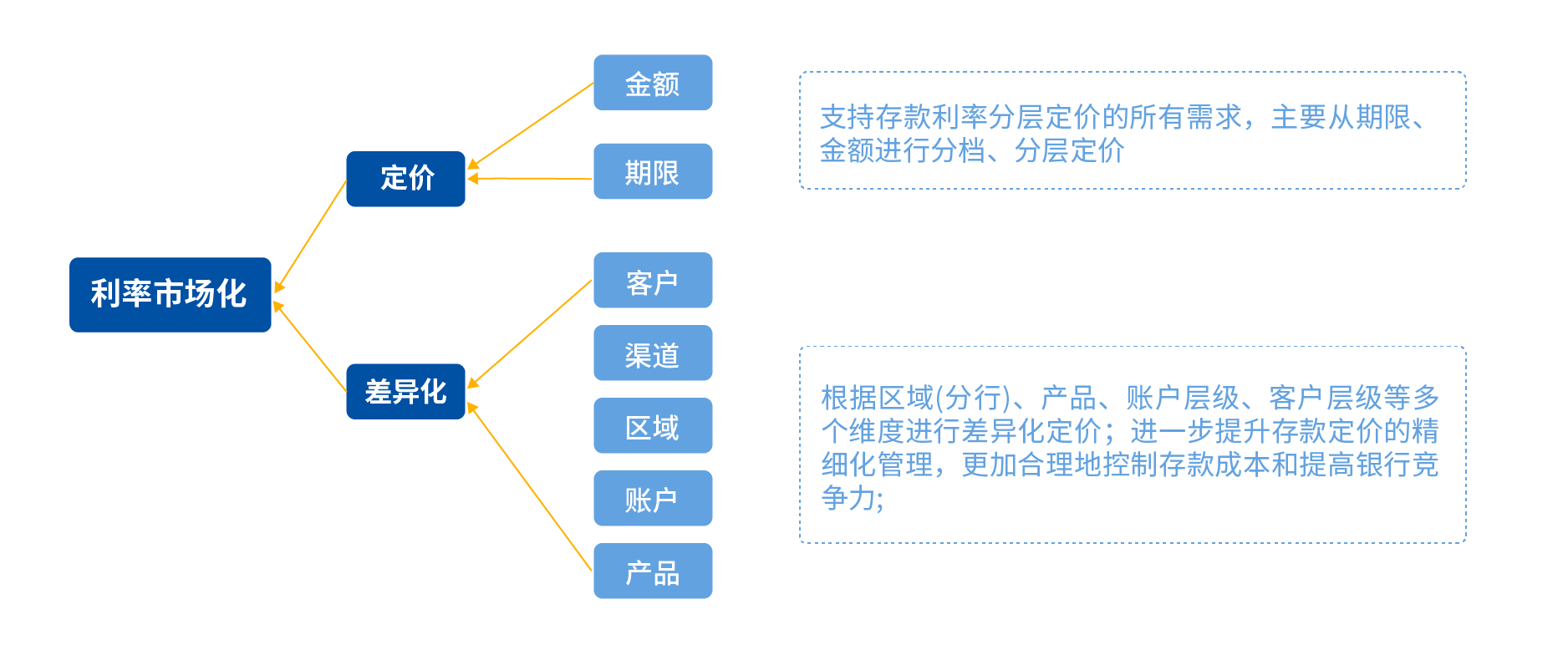 通過統一的利率工廠和靈活的利率定價模型,可以更好的支持商業銀行對客戶的差異化定價,支持與產品差異化定價共同實現產品創新和面向營銷的經營活動,幫助商業銀行實現全面支持利率市場化的精細化管理要求,抓住市場機遇,迅速壯大商業銀行業務規模,持續增強企業盈利能力。