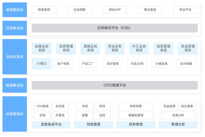 基于商業銀行“小核心、大外圍”架構體系,具備高性能、高可靠、高可用的特性