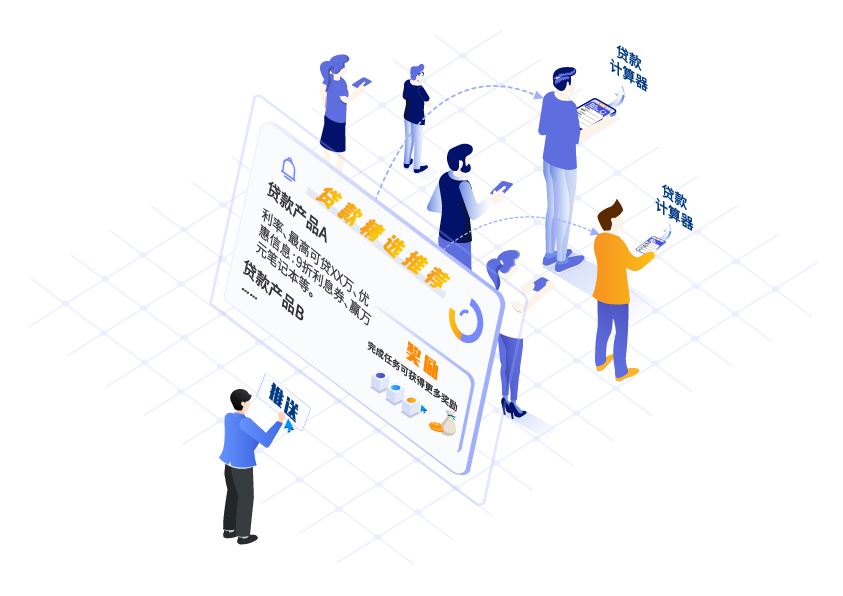 c端用戶通過手機銀行APP或網上銀行做貸款計算器的時候,系統可秒級推送貸款類產品,如完成任務,則會立即獲得相應的獎勵。