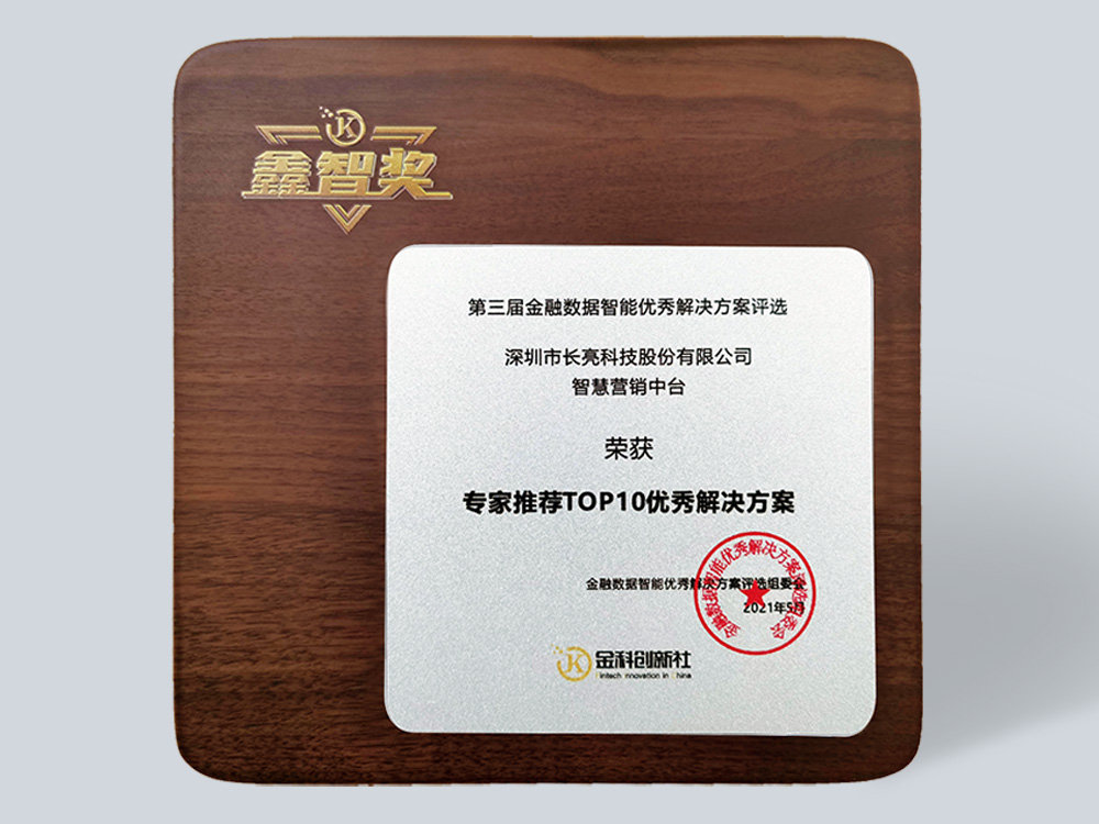 經(jīng)過5場線上答辯,以及來自國家科技評估中心、中國人民銀行以及銀行、保險、證券、基金等金融機構的52位評審專家和陪審專家兩輪打分、點評,長亮科技智慧營銷中臺憑借在數(shù)據(jù)標簽、畫像、算法模型、營銷活動、營銷模板等方面的先進性與成熟性,獲得“專家推薦TOP10優(yōu)秀解決方案”、“營銷創(chuàng)新優(yōu)秀解決方案”兩項大獎。