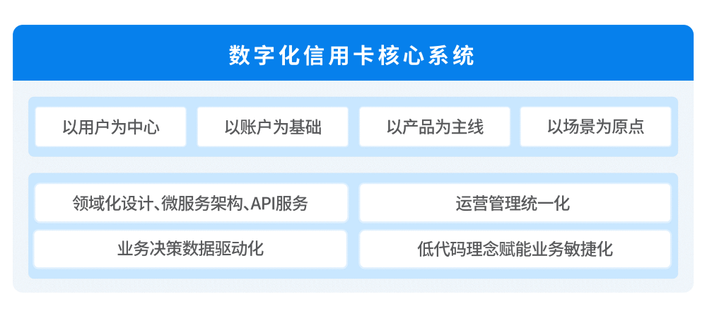 長(zhǎng)亮科技認(rèn)為新一代數(shù)字化信用卡核心系統(tǒng)應(yīng)該以用戶(hù)為中心、以業(yè)務(wù)為導(dǎo)向、以高可用為基石、以數(shù)字化為靈魂,是一個(gè)安全、自主、可靠的開(kāi)放平臺(tái)。