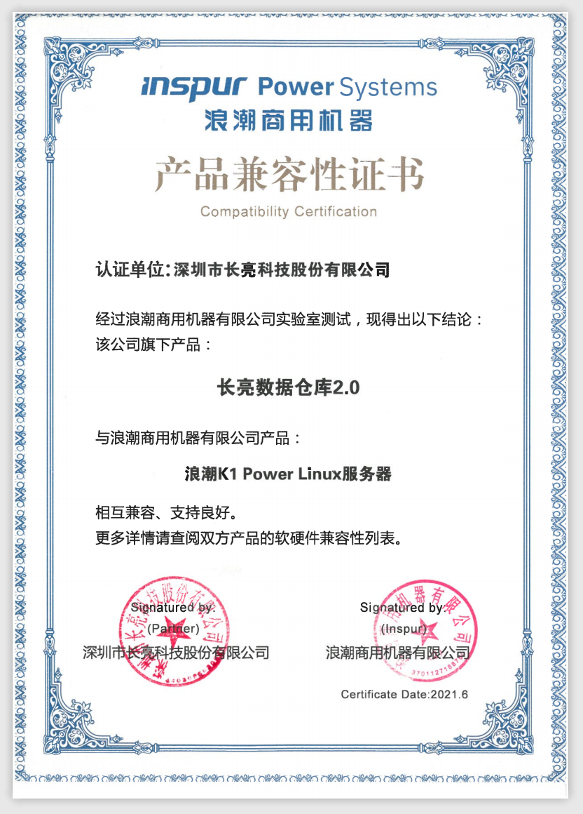 長亮科技數據倉庫解決方案與浪潮商用機器完成互認證,共建大數據生態