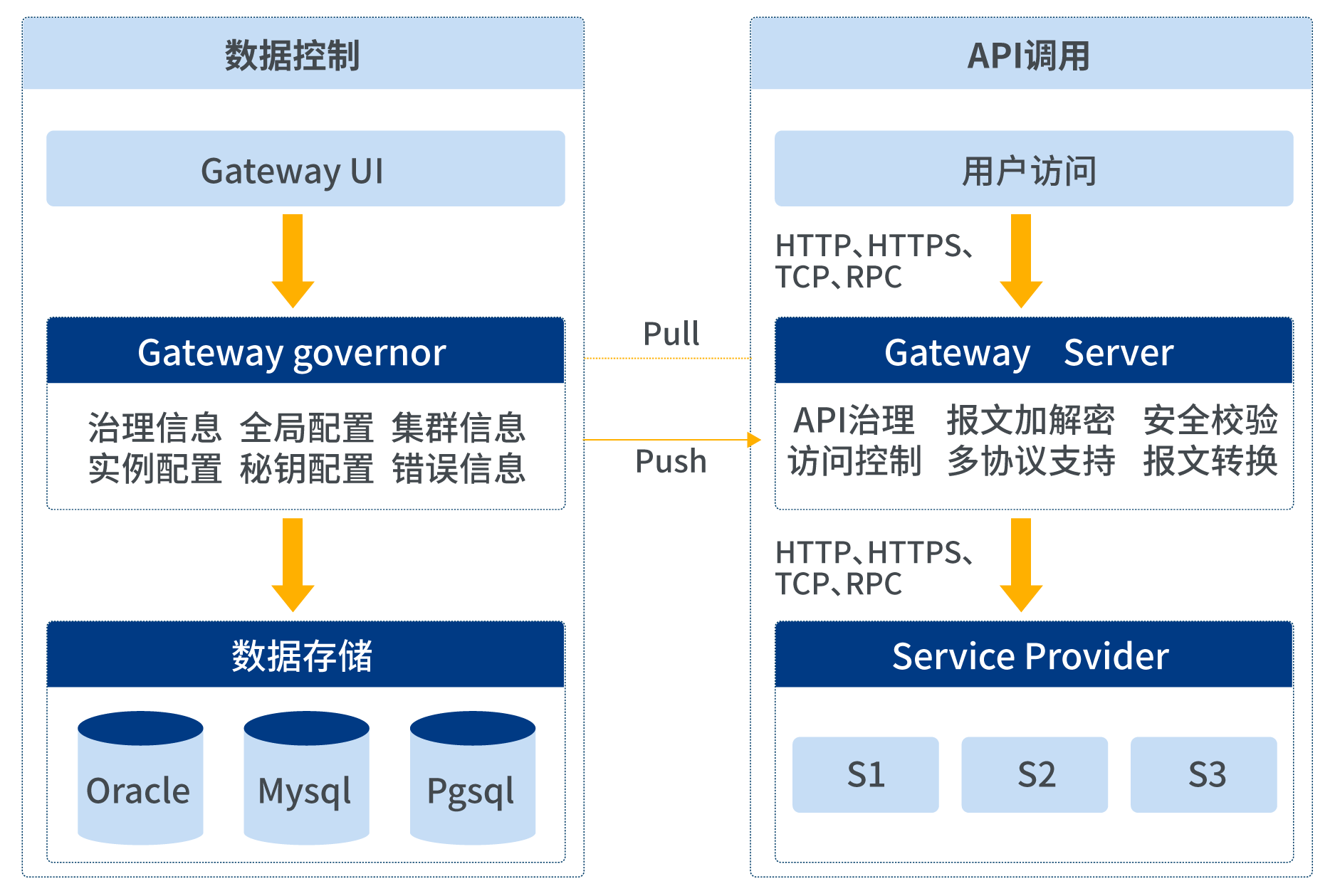 目前市面上基本都是一個(gè)服務(wù),沒(méi)有做到最大功能上的解耦,在此基礎(chǔ)上長(zhǎng)亮科技全面創(chuàng)新,將網(wǎng)關(guān)服務(wù)分為管控端和運(yùn)行端兩部分,單獨(dú)運(yùn)行,讓網(wǎng)關(guān)運(yùn)行服務(wù)脫離外界依賴,真正將gateway最大化限度的解耦。
