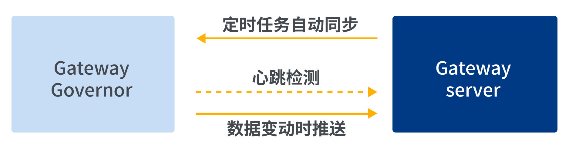 網(wǎng)關(guān)管控端會(huì)主動(dòng)向運(yùn)行端發(fā)送心跳檢測(cè),同時(shí)網(wǎng)關(guān)運(yùn)行端會(huì)定時(shí)向管控端進(jìn)行數(shù)據(jù)同步,預(yù)防管控端數(shù)據(jù)同步異常導(dǎo)致的不一致。