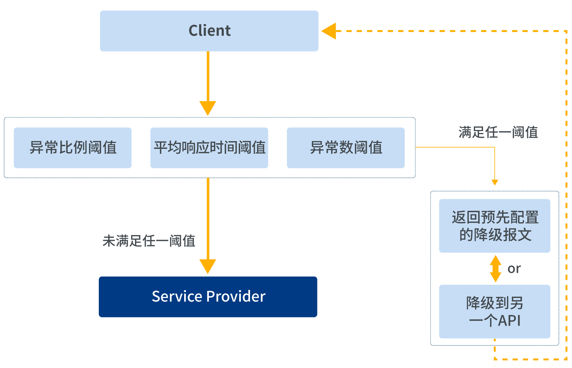 當(dāng)服務(wù)故障時(shí),為了防止整個(gè)系統(tǒng)的故障,對(duì)系統(tǒng)采取熔斷降級(jí)策略。可根據(jù)平均響應(yīng)時(shí)間、秒級(jí)異常比例、分鐘級(jí)異常數(shù)等維度進(jìn)行熔斷降級(jí)處理。