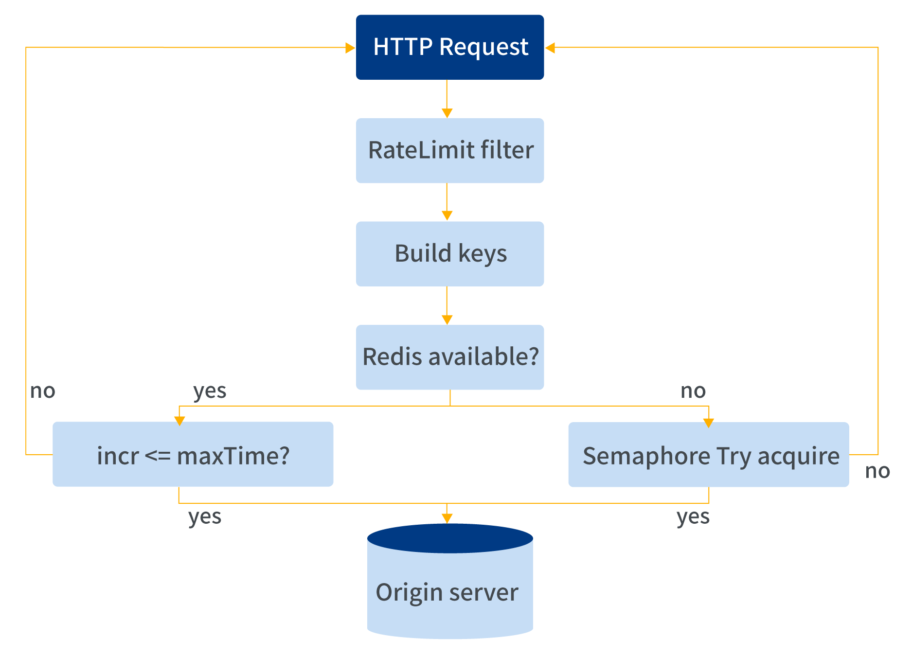 ? 當(dāng)Redis不可用時(shí),則使用JVM級(jí)別的實(shí)例限流。會(huì)直接從當(dāng)前實(shí)例的緩存中獲取一個(gè)Semaphore信號(hào)量,并嘗試獲取其許可,當(dāng)獲取成功則表示限流通過(guò),反之拋出限流異常。