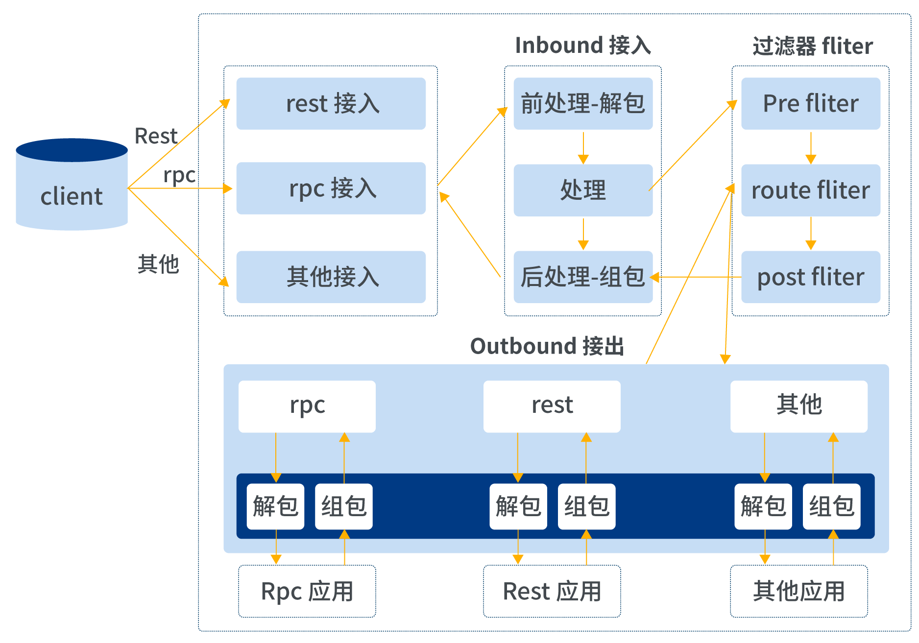 除Filter擴(kuò)展是在過(guò)濾器中進(jìn)行擴(kuò)展,其余擴(kuò)展均是針對(duì)inbound和outbound進(jìn)行擴(kuò)展。